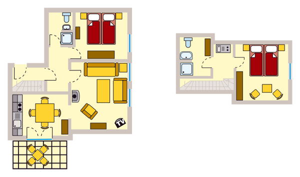 - Gerne können wir Ihnen diese Wohnung auch für 1-2 Personen zu einem günstigeren Tarif anbieten, dann steht Ihnen nur der untere Bereich der Wohnung zur Verfügung, Preis auf Anfrage